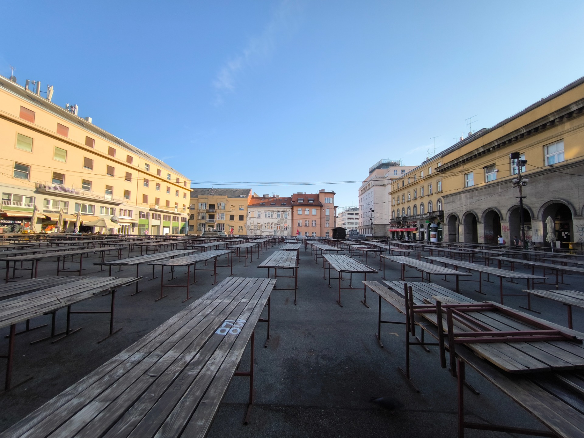 Jelačić'ten bir merdivenle çıkılan yükseltilmiş bir meydanda kurulan günlük pazar, 1930'dan beri şehrin başlıca ticaret merkezi olmuştur. Çevre köylerden gelen çiftçiler, ev yapımı yiyeceklerini ve çok taze meyve ve sebzelerini satmak için buraya gelirler . Alt kattaki kapalı pazarda kasaplar, balıkçılar ve yerel spesiyalite olan sir i vrhnje (peynir ve krema) satan yaşlı kadınlar bulunur. Çiçekler ve danteller de yaygın olarak mevcuttur. Yanında, yenilenmiş balık pazarı Pazartesi hariç her gün taze ürünler satmaktadır.