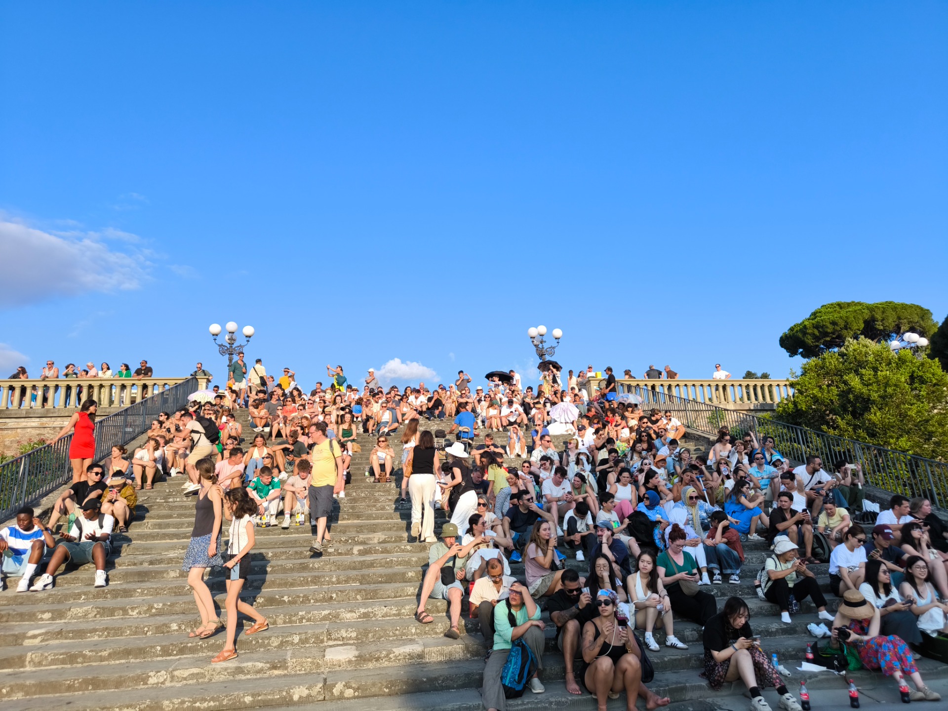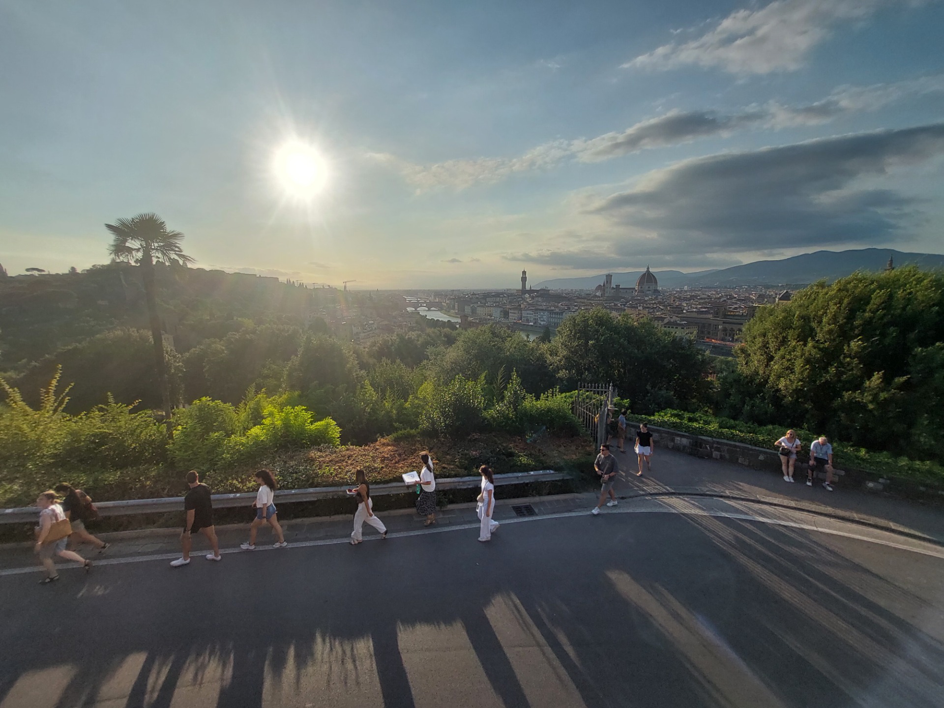 Bu manzara, Forte Belvedere'den Santa Croce'ye, Arno'yu geçen yaya yolları ve köprüler boyunca , Ponte Vecchio , Duomo , Palazzo Vecchio , Bargello ve Badia Fiorentina'nın sekizgen çan kulesi de dahil olmak üzere Floransa'nın kalbini yakalıyor.