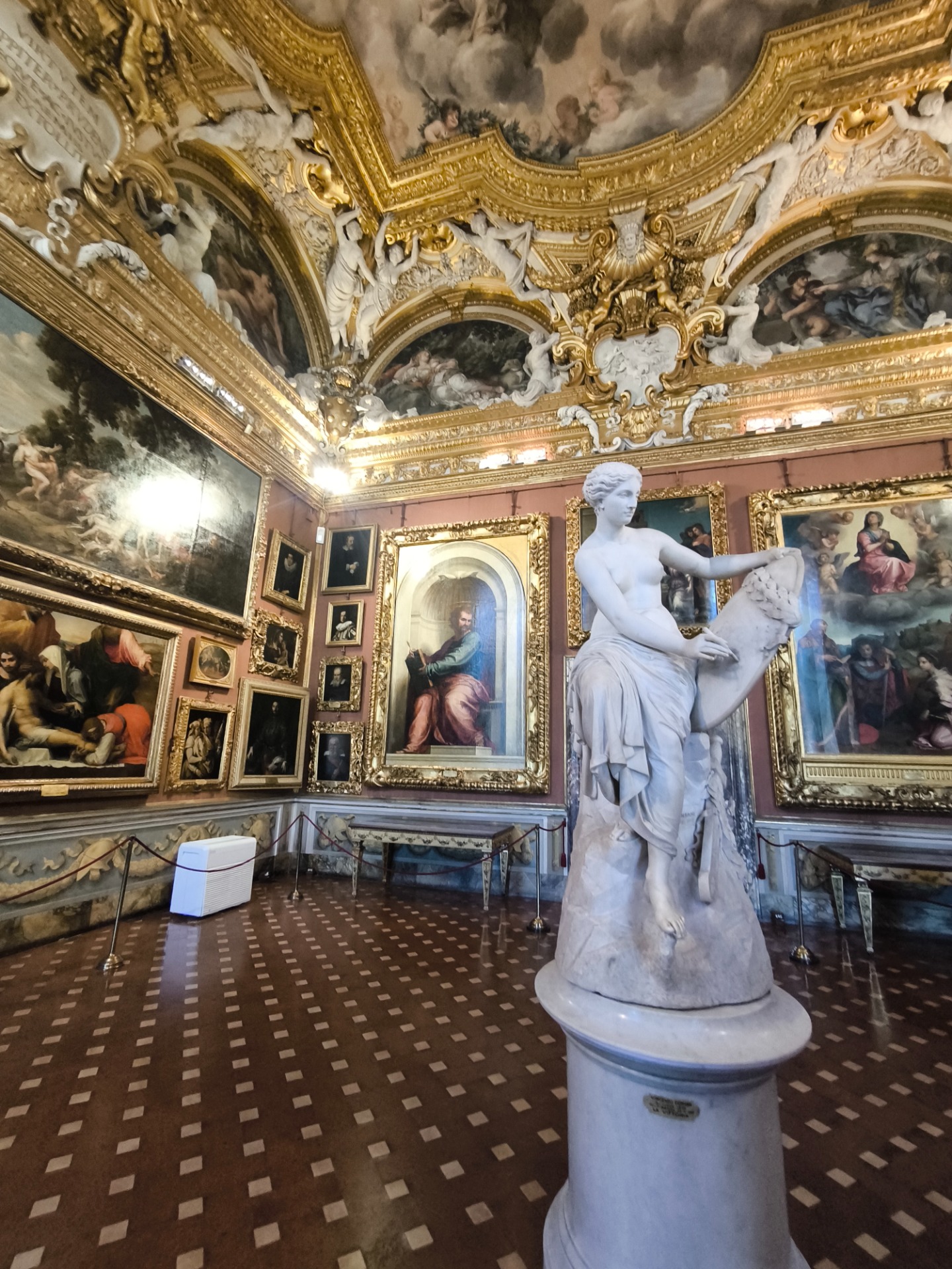 Saray 1549 yılında Medici ailesi tarafından satın alındıktan sonra Toskana Büyük Dükalık ailesinin en önemli yönetim rezidansı haline geldi. Saray bir büyük hazine dairesi haline geldi ve sonraki jenerasyon tablolar, kupa-şiltler, kuyumculuk ve pahalı mülkleri topladılar.